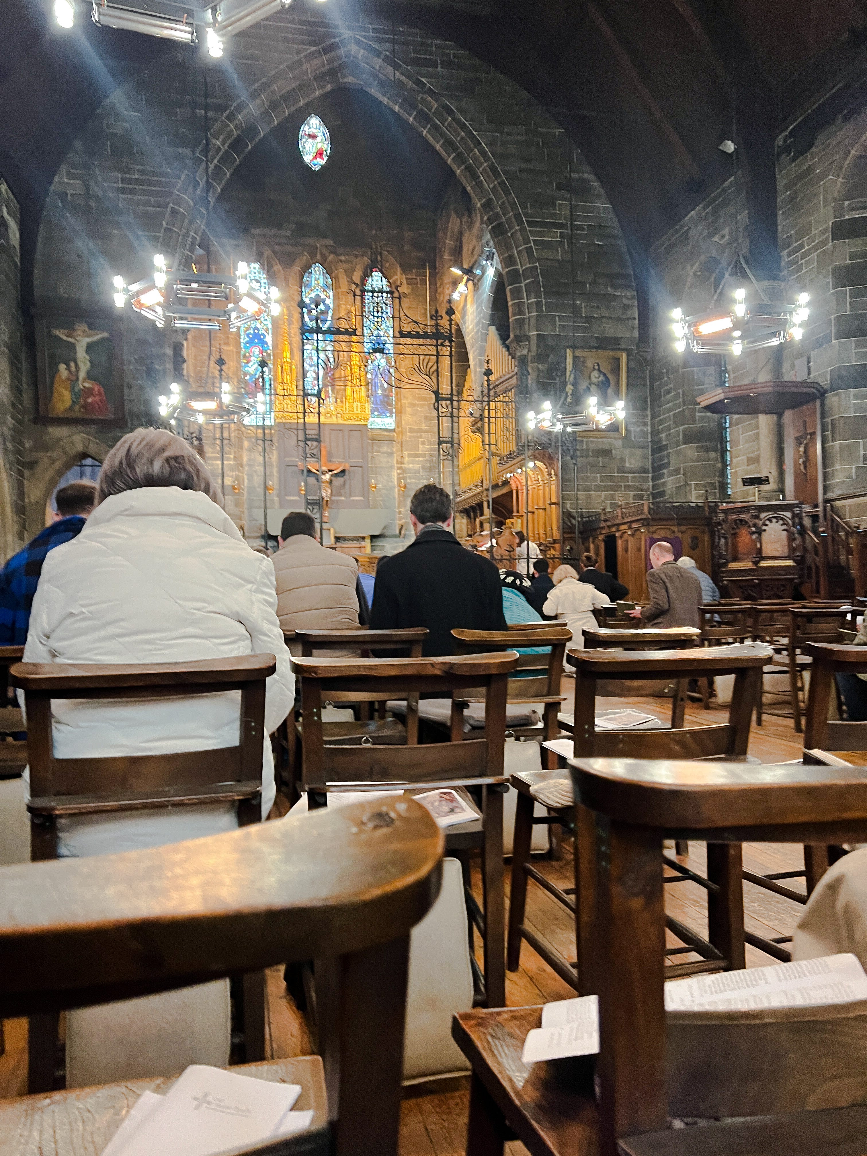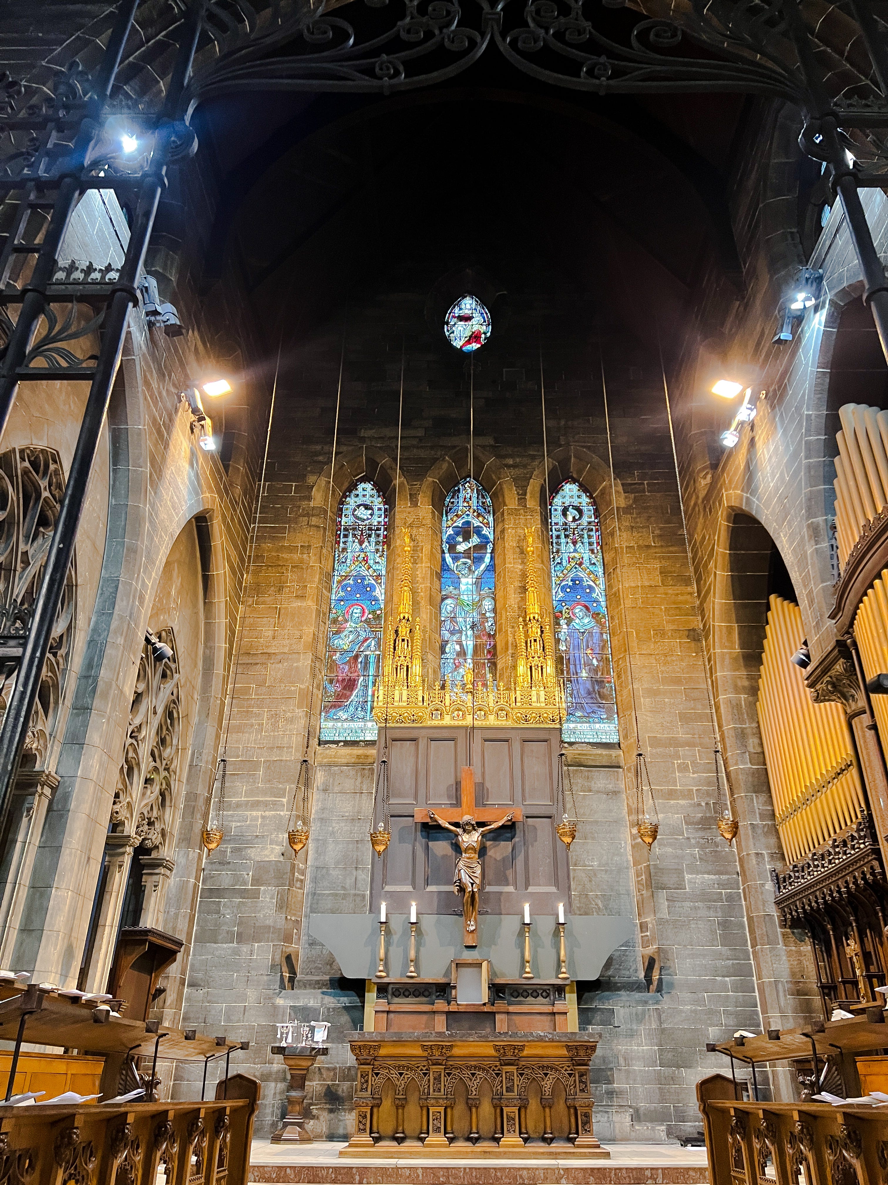 We were 20 minutes late (my best friend, Dusty, and my new friend, Anna, had decided to join me) thanks to Google Maps taking us on a wild goose chase through Waverley Station. The church building, at first glance, blends into the cityscape, but once your eyes fix upon it, the architecture almost sings to you with the ancient hymns soaked into its stones.